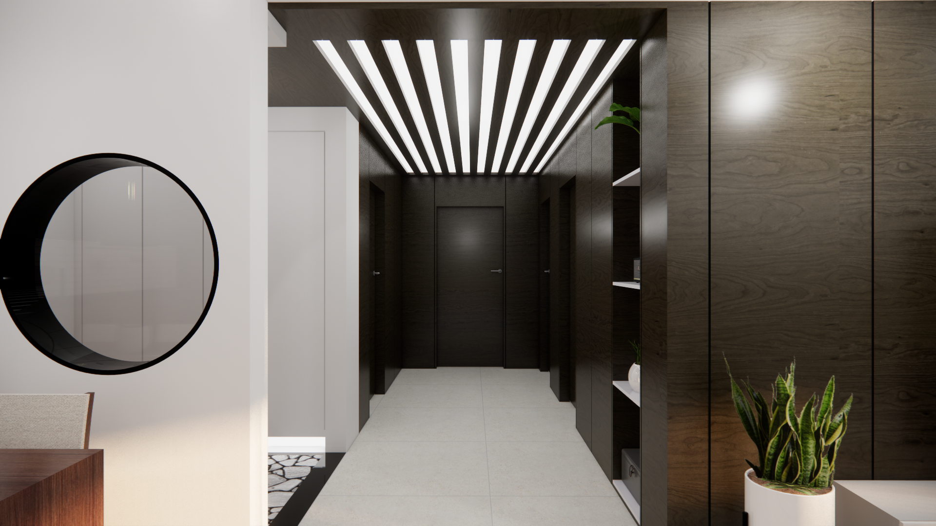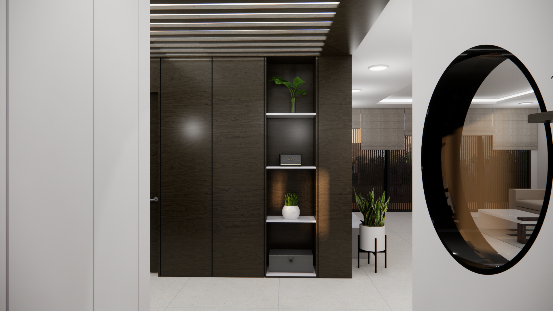 60평의 넓은 공간을 간결한 선과 자연 소재만으로 구성하여, 복잡한 도시 생활 속에서 온전한 쉼을 누릴 수 있는 사색의 공간을 제안합니다.